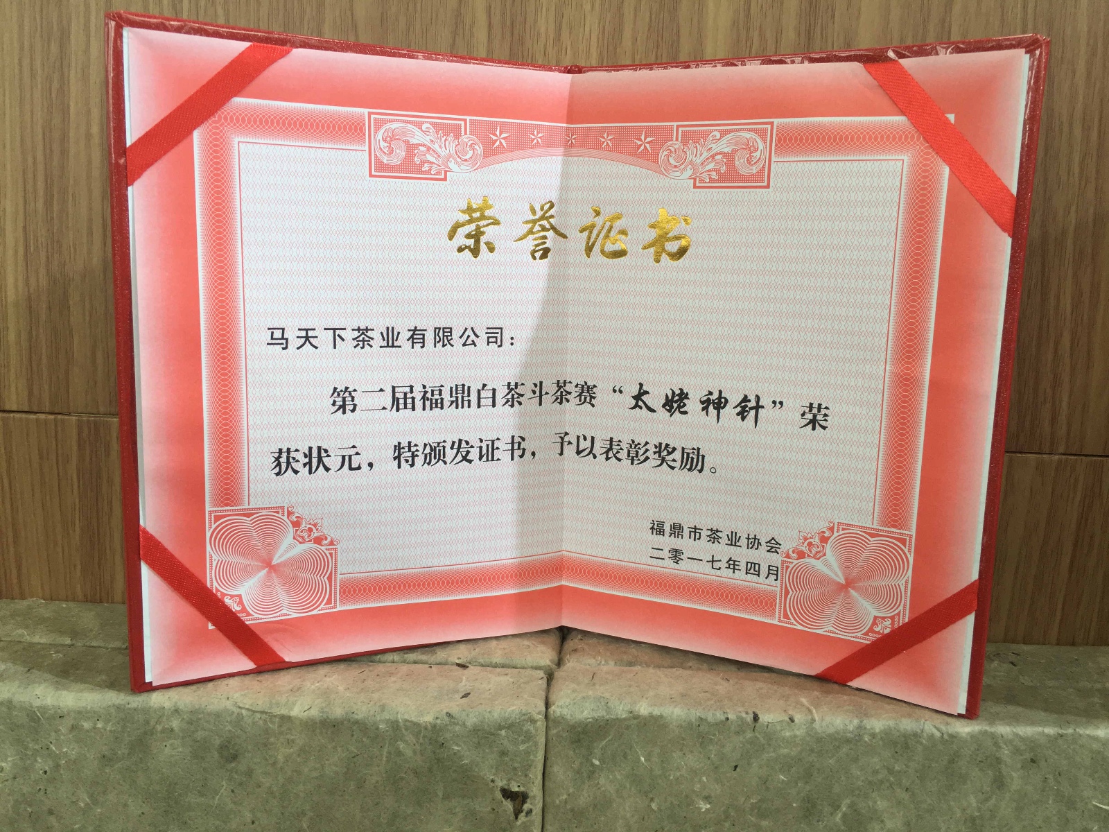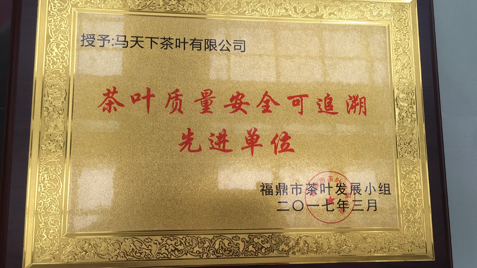 福鼎市茶业发展领导小组及福鼎市茶业协会并没有授予该公司马天下茶叶有限公司荣誉证书和先进单位奖牌,纯属伪造证书、奖牌。